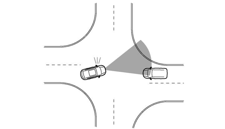 Wanneer een tegemoetkomend voertuig of een kruisende voetganger het pad van uw auto al heeft verlaten.